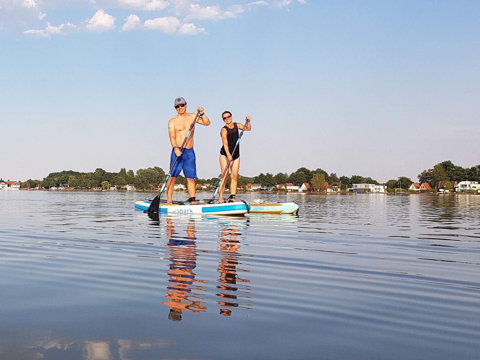 SUP! Die Trendsportart auf dem Steinhuder Meer! Immer häufiger sieht man auf dem Steinhuder Meer den einen oder anderen Surfer mit einem großen Paddel auf einem langen Brett stehend entspannt über das Wasser gleiten. Diese neue Trendsportart aus Hawaii wird „Stand-up-Paddling“, kurz SUP oder zu Deutsch Stehpaddeln, genannt. Auch wenn die ersten Stehversuche häufig etwas wackelig aussehen, ist das SUP sehr schnell zu erlernen und für jeden geeignet, der das Wasser nicht scheut und ein wenig Körperbeherrschung besitzt.