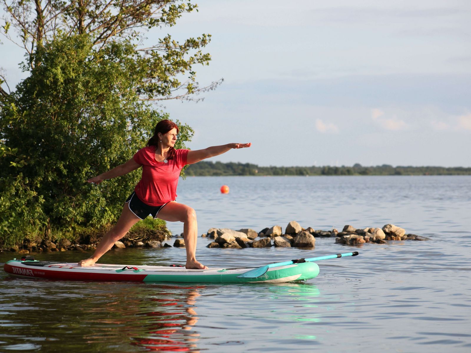 Aufrecht stehen, die Beine hüftbreit, ein wenig in die Knie gehen und das Paddel im Wasser nach hinten und über dem Wasser nach vorne ziehen – so kann man auch mal einfach und bequem über das Wasser gehen. Eine einfache und umweltschonende Art, sich auf dem Wasser fortzubewegen. Neben einer Menge Spaß bringt das Paddeln ein perfektes Ganzkörper-Training mit sich!